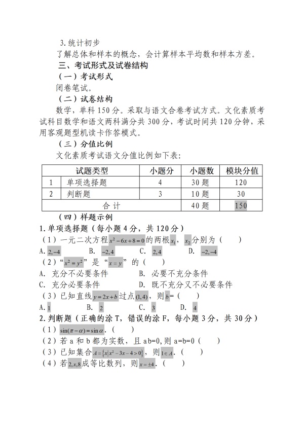本考试大纲是依据国家发布的《普通高中课程方案》和学科课程标准,同时结合我省普通高中和中职学校数学教学实际情况编写制定的。