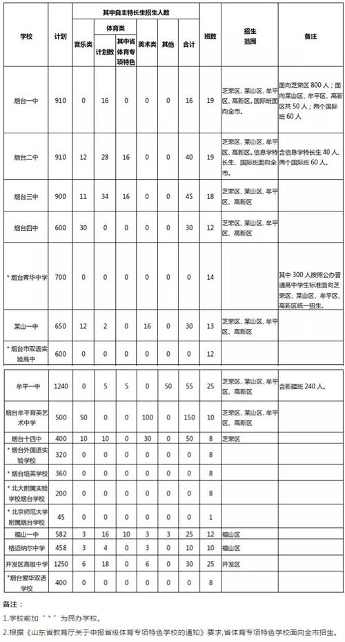 今年烟台一中、烟台二中、烟台三中、烟台四中、莱山一中、牟平一中、牟平育英中学和青华中学等高中均面向四区统一招生。