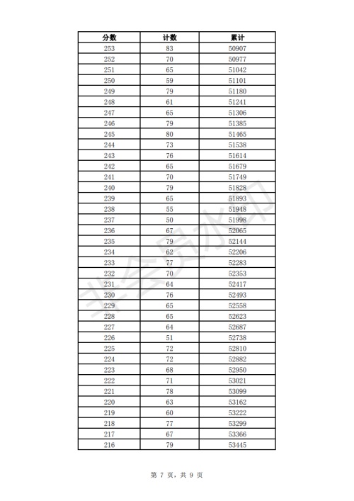 2019年济南市中考成绩一分一段表